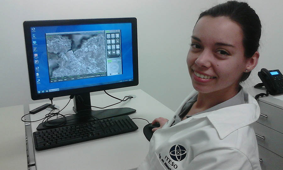 Su primera decisión de arrojo fue inscribirse a la naciente Ingeniería en Nanotecnología del ITESO, cuando el programa recibió a su primera generación de estudiantes en agosto de 2011. Entonces, ya había una gran expectativa sobre este campo profesional debido a sus posibilidades de innovación. Esto se constató en la comunidad a la que reunió el programa académico en su primer ciclo.